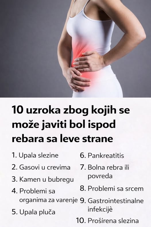 Uzrci zbog kojih se može javiti bol ispod rebara sa leve strane. U nastavku teksta doznajte više. Bol ispod levog rebarnog luka može biti znak različitih zdravstvenih problema, a njegov intenzitet i trajanje variraju u zavisnosti od uzroka. Nekada je u pitanju prolazna neprijatnost, dok u drugim slučajevima bol može signalizirati ozbiljna stanja koja zahtevaju hitnu medicinsku intervenciju. Najvažnije je shvatiti da bol u ovoj oblasti ne mora uvek biti povezan sa stomakom – može ukazivati i na probleme sa srcem, plućima, bubrezima ili slezinom.