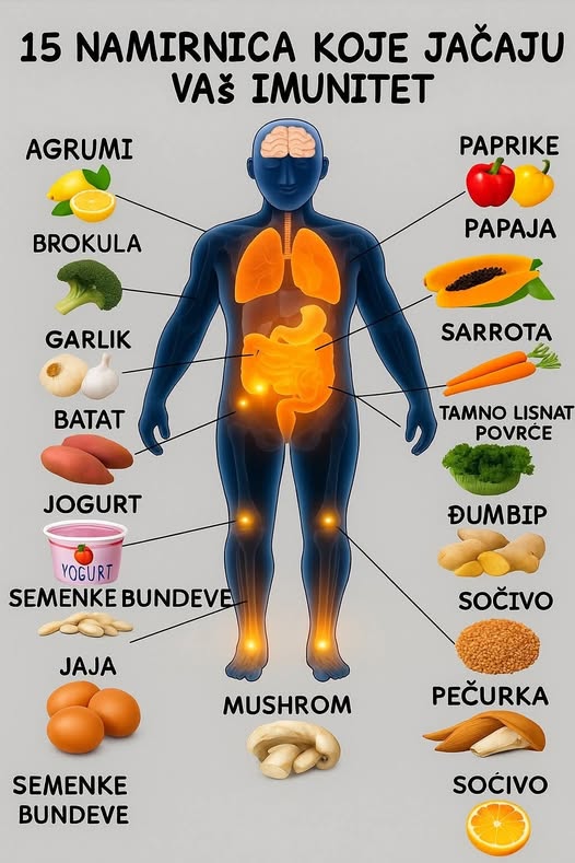 Namirnice koje prirodno jačaju vaš imunološki sistem. O kojim namirnicama je riječ pročitajte u nastavku teksta. Kada tijelu treba pojačanje, najbolja podrška često dolazi iz kuhinje. Vitamini, minerali i biljni spojevi koje svakodnevno unosimo imaju stvaran uticaj na snagu našeg imunološkog sistema. Iako ne postoji čarobna namirnica koja sama obavlja sav posao, postoji mnogo hrane koja može pomoći organizmu da se lakše nosi sa izazovima. U nastavku je pregled namirnica koje se često preporučuju zbog svojih korisnih svojstava i koje se lako uklapaju u razne obroke.