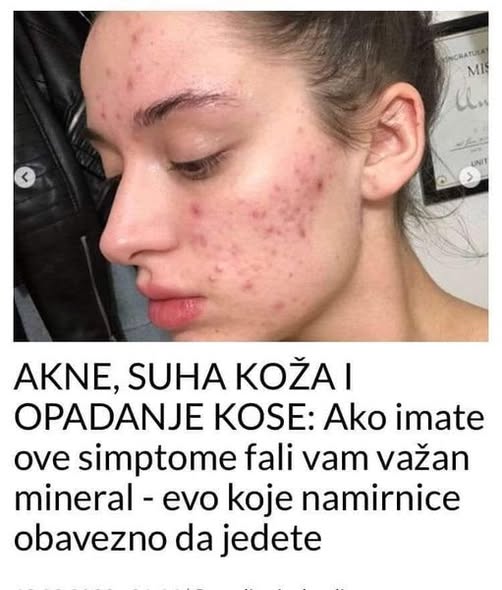 Fali vam važan mineral ako imate akne, suhu kožu ili vam kosa opada. U nastavku teksta pročitajte o kojem mineralu je riječ. Cink je mineral o kojem se često govori usput, ali njegova uloga u organizmu je mnogo veća nego što većina ljudi pretpostavlja. Iako je potreban u relativno malim količinama, njegov značaj je ogroman. Zajedno sa željezom, kalcijumom, magnezijumom i kalijumom, cink spada među najvažnije minerale neophodne za normalno funkcionisanje ljudskog tijela. Bez njega, brojni procesi u organizmu ne bi se mogli odvijati pravilno.