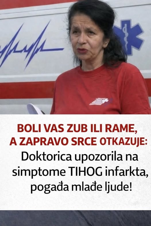 Doktorica upozorila na simptome tihog infarkta. O kojim simptomima je riječ doznajte u nastavku teksta. U posljednje vrijeme ljekari sve češće upozoravaju na tzv. tihi srčani udar, stanje koje može proći gotovo neprimijećeno ili se zamijeniti za mnogo blaže zdravstvene tegobe. Posebno zabrinjava činjenica da se javlja kod sve mlađih osoba, i to često bez klasične slike jakog bola u grudima na koju većina ljudi prvo pomisli kada se spomene infarkt. Ljekarka iz Hitne pomoći, Danijela Jevtić, ističe da je važno prepoznati i one simptome koji nisu tipični, jer upravo oni mogu spasiti život.