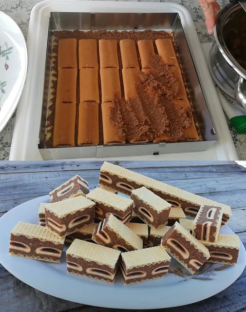 Nakon slaganja, tortu je potrebno ostaviti da odstoji kako bi se svi slojevi povezali. Najbolje je da odstoji nekoliko sati u frižideru, a idealno preko noći. Vafli će omekšati, krema će se stegnuti, a ukusi će se lijepo prožeti.