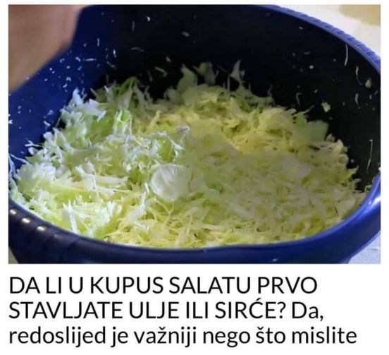 Još jedan ključni detalj je redoslijed dodavanja ulja i sirćeta. Prema savjetu Neše Travke, ulje treba uvijek dodati prvo. Razlog je vrlo jednostavan, ali i logičan: ulje stvara tanki zaštitni sloj na površini narezanog kupusa, “zatvarajući” pore i sprečavajući da vitamini i minerali lako iscure. Ako se prvo doda sirće, taj efekat se gubi, a nutritivne vrijednosti odlaze zajedno sa sokom povrća.
