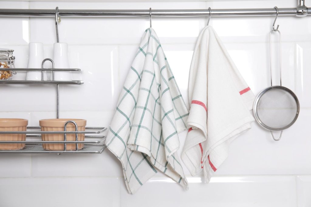 Jedno od praktičnih rješenja su zidne kuke postavljene na sigurnoj udaljenosti od pećnice i ploče za kuhanje. Tako krpa ostaje dostupna, ali ne predstavlja opasnost. Držači koji se montiraju na zid ili unutrašnju stranu ormarića također su dobar izbor.