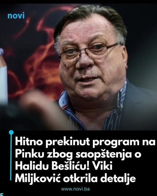 Prekinut program na Pinku zbog saopštenja o Halidu Bešliću. U nastavku teksta doznajte o čemu je riječ. Poznata pjevačica i članica žirija muzičkog takmičenja Pinkove zvezde, Viki Miljković, otkrila je najnovije informacije o zdravstvenom stanju svog dugogodišnjeg prijatelja i kolege Halida Bešlića. Vijest o njegovim zdravstvenim problemima uznemirila je javnost, pa se svaka nova informacija pomno prati i prenosi.