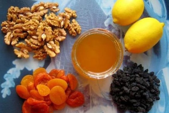 Sve suhe sastojke operi i dobro osuši. Limun nareži na tanke kriške (ili samelji u blenderu s korom, ali bez sjemenki). Suho voće i orašaste plodove takođe možeš grubo samljeti, da se lakše sjedine s medom. Zatim sve pomiješaj u većoj posudi i dodaj med. Smjesu prelij u staklenu teglu i čuvaj u frižideru.