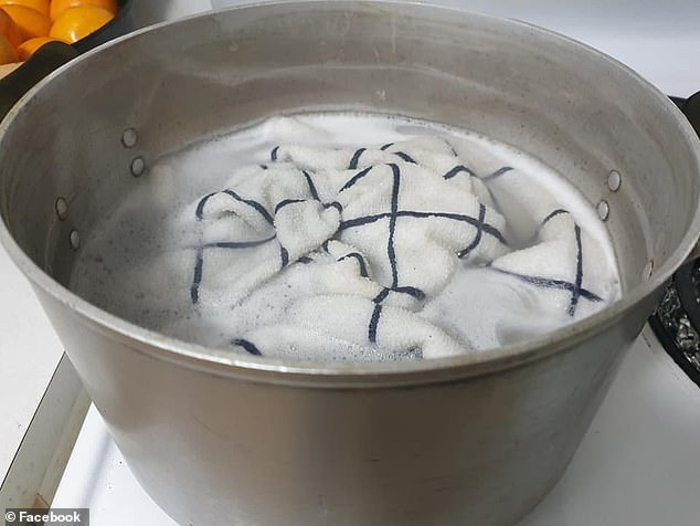 Poklopite lonac i ostavite da se voda postepeno hladi. Tokom hlađenja rastvor će djelovati na mrlje i omekšati prljavštinu. Preporučuje se da krpe ostanu u toj vodi najmanje sat vremena.