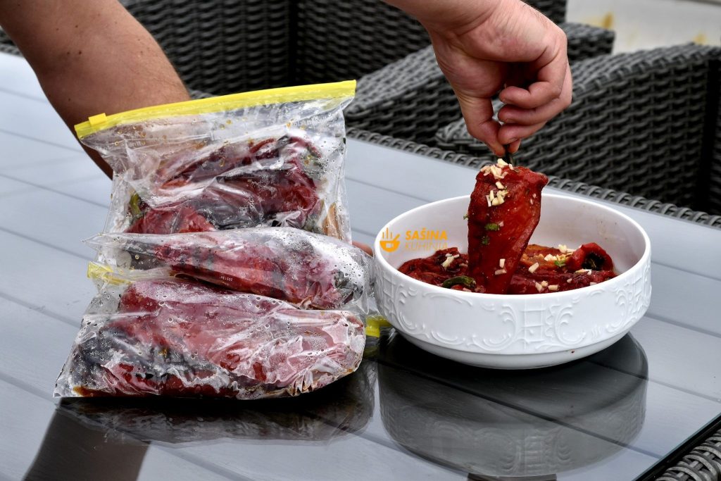 Dok pečete paprike, pored šporeta pripremite veliku šerpu ili plastičnu vanglu i nekoliko običnih najlonskih kesa. Svaku papriku, čim je skinete s ringle, stavite direktno u kesu, a kesu ubacite u posudu. Kada napunite jednu kesu, zavežite je i ostavite sa strane. Najbolje je da paprike ostanu zatvorene najmanje pola sata, a idealno bi bilo oko dva sata.