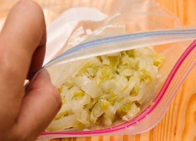 Kada prođe ta početna faza hlađenja, kupus se prebaci u pripremljene posude ili kese. Važno je da se posude dobro zatvore kako ne bi upijale mirise drugih namirnica iz zamrzivača i kako bi se spriječilo isušivanje.