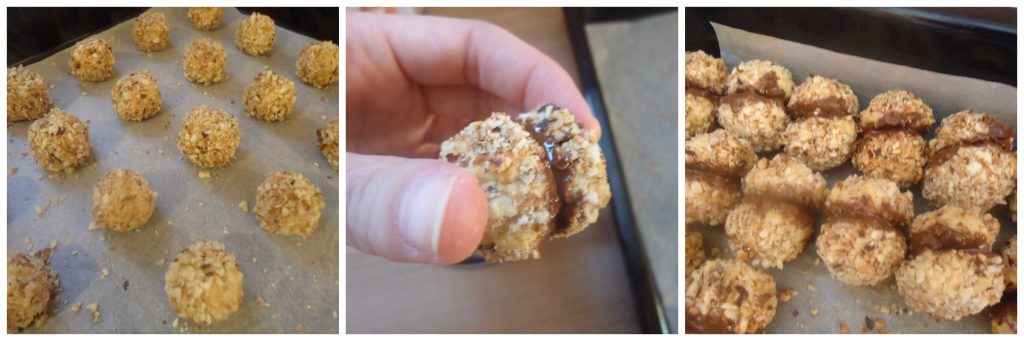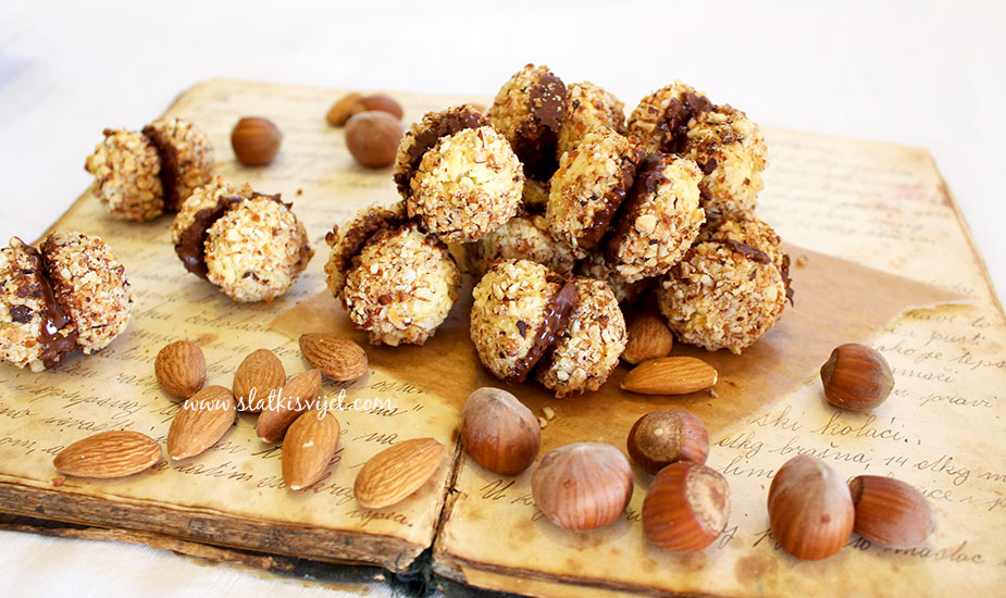 Svaka kuglica se prvo umače u lagano umućena bjelanca. Bjelanca služe kao vezivo za mljevene bademe ili orahe. Nakon umakanja u bjelance, kuglica se kotrlja u mljevenim orasima ili bademima. Ovaj vanjski sloj daje kolačićima blagu hrskavost i dodatni ukus.