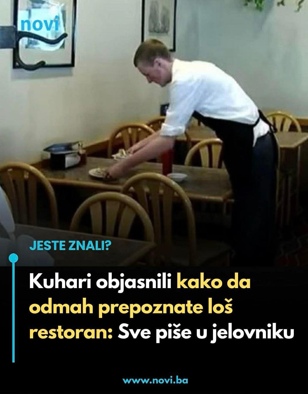 Kuhari objasnili kako da odmah prepoznate loš restoran. U nastavku teksta otkrivamo vam trik. Jelovnik u restoranu nije samo lista jela i cijena. On je često prvi pravi kontakt gosta s kuhinjom i načinom razmišljanja ljudi koji stoje iza nje. Kroz nekoliko pažljivo biranih riječi može se naslutiti koliko se pažnje posvećuje sastojcima, koliko je kuvar kreativan i da li restoran ima jasnu ideju šta želi da ponudi. Ako se malo bolje pogleda, jelovnik otkriva mnogo više nego što se na prvi pogled čini.