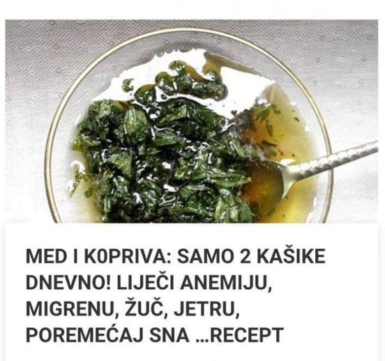 Prirodni lijek koji trebate zapisati. U nastavku teksta saznajte šta liječe med i kopriva. Iako je mnogi doživljavaju samo kao dosadni korov koji peče na dodir, kopriva je zapravo jedna od najvrijednijih biljaka koje priroda nudi. Stoljećima se koristi u narodnoj medicini, a suvremena istraživanja potvrđuju ono što su naši preci već znali – kopriva čisti organizam, jača krv, potiče imunitet i pomaže tijelu da se oslobodi toksina. Ova naizgled obična biljka skriva u sebi čitav niz hranjivih tvari koje podržavaju zdravlje cijelog organizma.