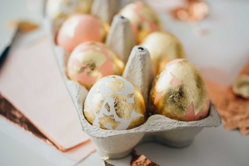 Nakon toga na premazani dlan stavlja listić jestive zlatne ili srebrne folije. Laganim trljanjem folija se razbija u sitne, nepravilne komadiće. Sljedeći korak je uvaljati tvrdo kuhano jaje u tu smjesu, čime se komadići folije prenose na površinu jaja. Rezultat je vrlo upečatljiv: pisanice dobivaju mramorni metalik efekt koji izgleda luksuzno i sofisticirano.