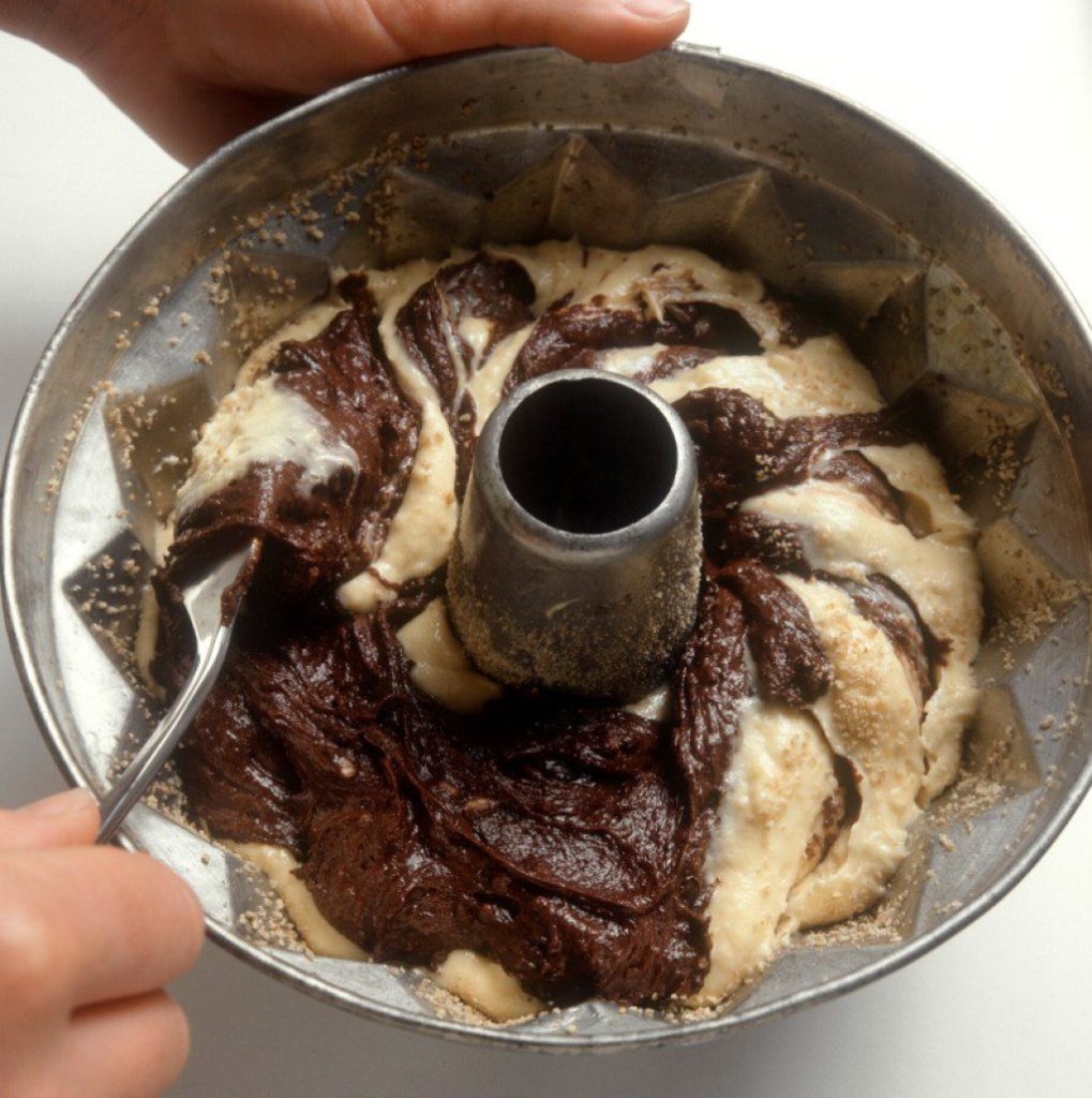 Kada je osnovna smesa spremna, podelite je na dva dela. U jedan deo dodajte kakao i dobro promešajte dok ne dobijete tamnu masu. Pripremite kalup za kuglof – najbolje je koristiti kalup sa rupom u sredini, koji omogućava ravnomerno pečenje. Naizmenično sipajte svetlu i tamnu smesu u kalup, formirajući slojeve koji će kasnije dati mramorni efekat.