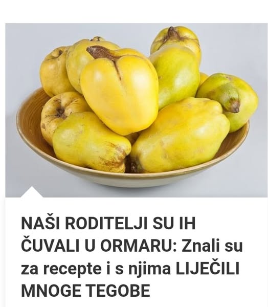 Ljekovito voće koje su naši roditelji čuvali na ormaru. U nastavku teksta doznajte o kojem voću je riječ. Dunja je voćka koja već vijekovima ima posebno mjesto i u kulinarstvu i u narodnoj medicini. Nije slučajno što je nazivaju kraljicom jeseni: njen miris ispunjava kuću toplinom, a ukus podsjeća na djetinjstvo i zimnice koje su pravile naše bake. Čuva se na ormarima da zamiriše prostoriju, od nje se prave kompot, slatko, žele i pekmez, a mnogi je jedu i svježu, iako je tvrda i oporog ukusa. Ipak, prava vrijednost dunje nije samo u njenom mirisu i okusu, već u nevjerovatnim zdravstvenim blagodatima koje donosi.