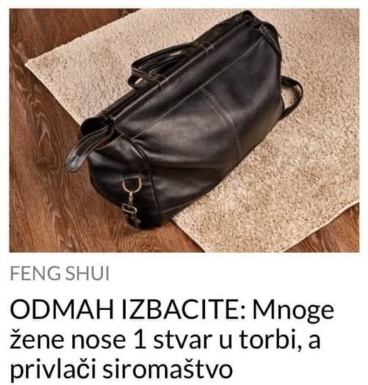 Ako nosita ovo u svojoj torbi onda privlačite siromaštvo. O čemu je riječ doznajte u nastavku teksta. Mnogi misle da je torba samo modni dodatak ili praktičan prostor za sitnice koje nosimo svakodnevno. Međutim, prema feng shuiju, ona ima daleko dublje značenje. Torba simbolizuje način na koji upravljate svojim životom, posebno energijom i finansijama. U njenom sadržaju, urednosti i načinu na koji je nosite, može se ogledati vaš odnos prema novcu, stabilnosti i samopouzdanju. Ako je vaša torba haotična, vjerovatno se i u drugim sferama života osjeća sličan nered.