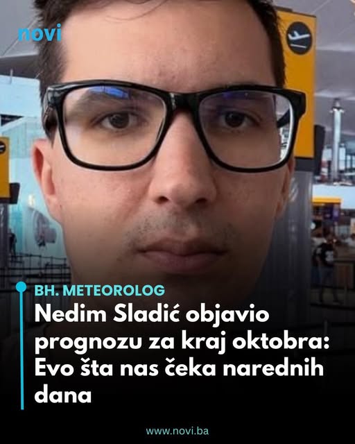 Nedim Sladić objavio prognozu za kraj oktobra. U nastavku teksta doznajte šta je rekao. Predstojeći dani donose promjenjivo vrijeme širom Bosne i Hercegovine, uz česte oblake, južni vjetar i povremene padavine. Nakon mirnijeg početka sedmice, atmosfera se ponovo destabilizuje, a meteorolozi najavljuju niz dana s izmjenom sunca, oblaka i kiše. Iako se ne očekuju obilne padavine, povremeni pljuskovi i jak vjetar bi mogli nakratko poremetiti svakodnevnicu građana.