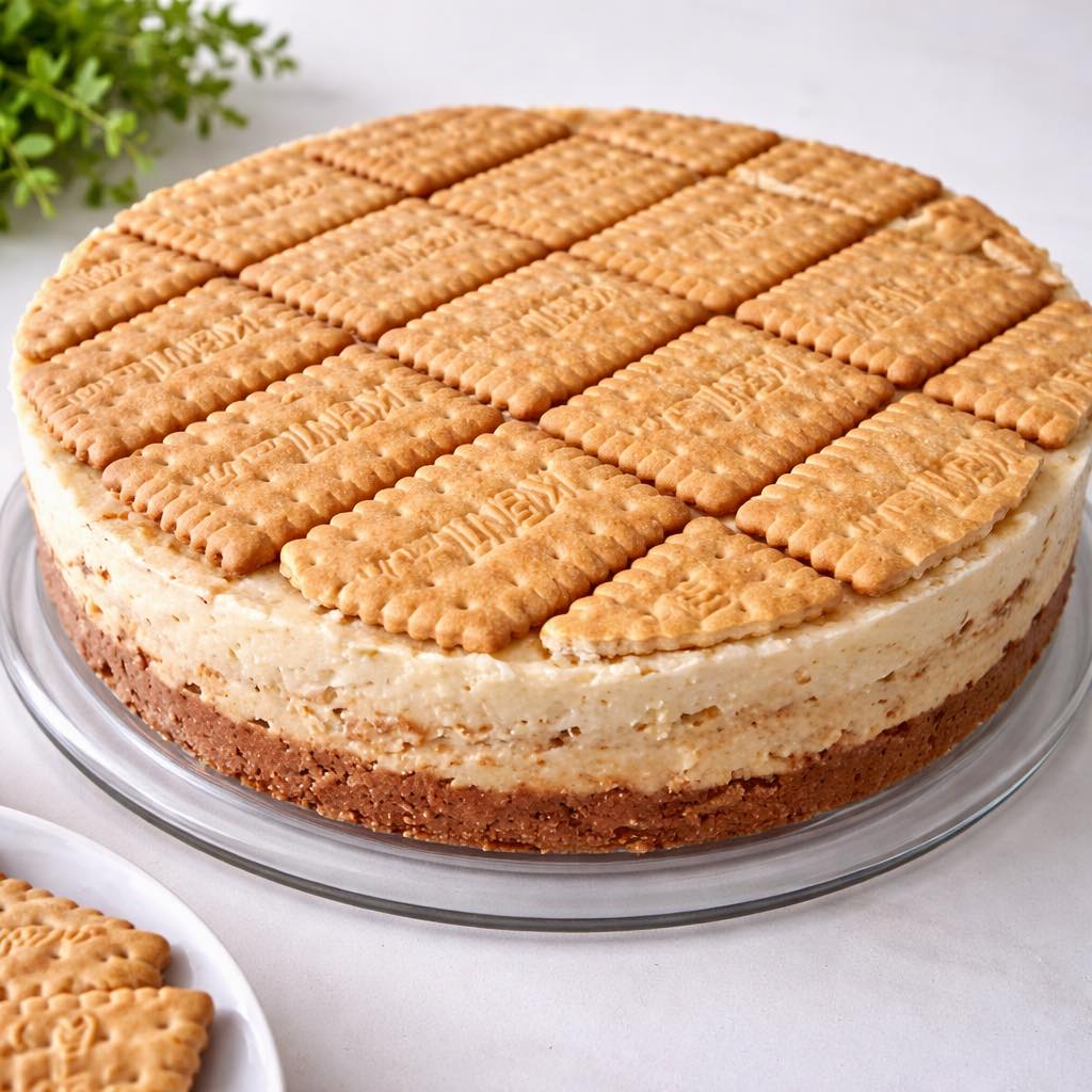 Za slaganje možete koristiti kalup za tortu sa obručem ili dublji pleh. Na dno posložite red petit keksa. Ako želite mekšu tortu, kekse možete kratko umočiti u mlijeko, ali pazite da se ne natope previše kako se ne bi raspali.
