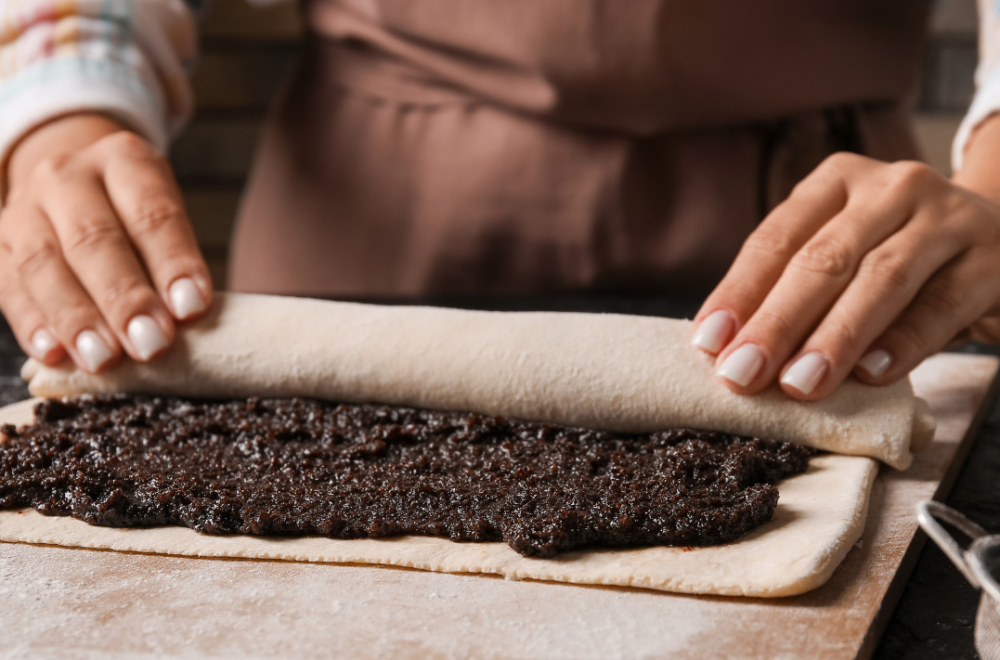 Tijesto se puni ravnomjerno, zatim se pažljivo zamota poput štrudle. Prije pečenja preporučujem da se premaže umućenim jajetom kako bi dobilo lijepu zlatnu boju. Peče se u prethodno zagrijanoj pećnici na 180 stupnjeva, dok ne porumeni i ne zamiriše cijela kuhinja.
