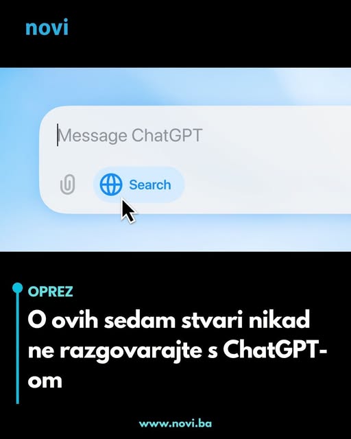 Sedam stvari o kojima ne trebate razgovarajte s ChatGPT-om. O kojim stvarima he riječ doznajte u nastavku teksta. Umjetna inteligencija sve se više uvlači u svakodnevne navike ljudi, često i bez da to primijetimo. Alati temeljeni na velikim jezičnim modelima danas pomažu pri pisanju poruka, prevođenju, istraživanju informacija i obavljanju raznih poslovnih zadataka. Iako ih mnogi ne koriste svjesno svaki dan, brojni digitalni servisi koje koristimo oslanjaju se upravo na takve tehnologije. To znači da smo s njima u kontaktu češće nego što mislimo.