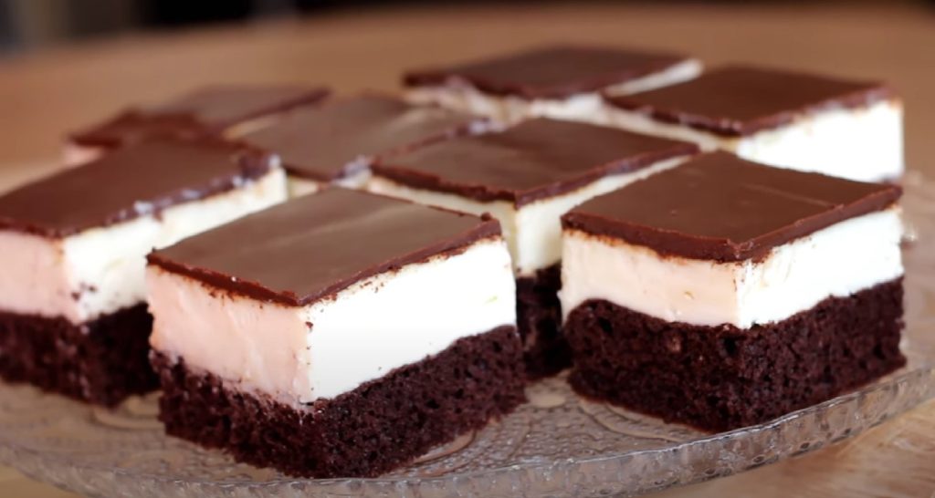 Kolač stavite u frižider na hlađenje najmanje 3 do 4 sata. Najbolje je ostaviti ga preko noći kako bi se svi slojevi lepo povezali i kako bi se kocke lakše seckale.