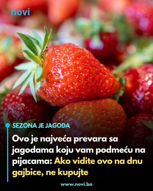 Kako odabrati dobre jagode na pijacama? U nastavku teksta otkrivamo vam trik. Na pijaci se često vodimo prvim utiskom. Sjajna boja, uredno složeni plodovi i osmijeh prodavača lako nas ubijede da su jagode pred nama svježe i domaće. Ipak, ono najvažnije gotovo uvijek ostaje skriveno. Istina se ne nalazi na vrhu gajbice, već na njenom dnu, tamo gdje rijetko ko zaviri.