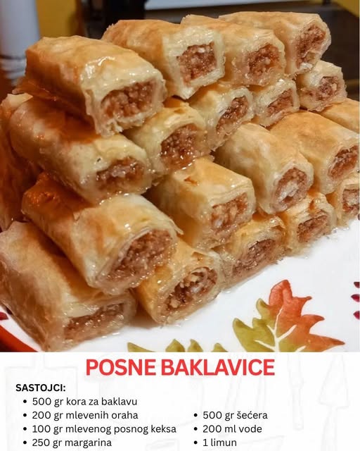 Ako ste ljubitelji slatka ovaj kolač će vas očarati. U nastavku teksta donosimo vam recept za posne baklavice. Ako tražite desert koji je jednostavan, brz i siguran izbor kada želite nešto slatko bez mlečnih sastojaka, ove posne baklavice su pravo rešenje. Ne traže komplikovane tehnike ni posebne alate, a rezultat je bogat, sočan i pun ukusa. Spoj mlevenih oraha, keksa i topljenog margarina daje punu aromu, dok sirup sa limunom zaokružuje celu priču i donosi onu prepoznatljivu sočnost.
