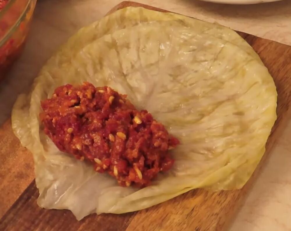 Prvi korak je priprema listova kupusa. Svaki list pažljivo odvojite, a tvrdi dio pri vrhu lagano odstranite kako bi se list lakše savijao. U većoj posudi pomiješajte mljeveno meso sa sitno sjeckanim crvenim i bijelim lukom. Dodajte peršun, malo ljute paprike, so, jaje i prethodno skuhanu i ocijeđenu rižu. Jogurt u ovoj verziji daje dodatnu sočnost pa ga možete umiješati direktno u smjesu.
