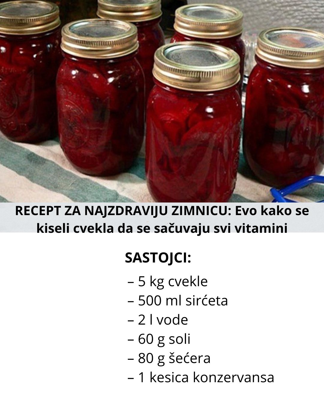 Na ovaj način dobićete oko devet tegli savršeno ukiseljene, hrskave cvekle koja zadržava prirodnu boju i miris.