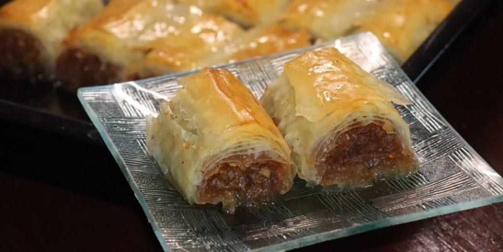 Kad sam prvi put čula za ovu verziju, nisam mogla zamisliti kako pita od jabuka može podsjećati na baklavu. Međutim, tajna je u jednostavnom triku — kore se slažu i premazuju mješavinom vode i ulja, zatim se pune aromatičnim nadjevom od jabuka i oraha, a na kraju sve to upija topli, mirisni sirup. Upravo taj sirup, poznat kao agda, daje desertu sočnost, sjaj i onaj prepoznatljiv “baklava” osjećaj pod zubima.