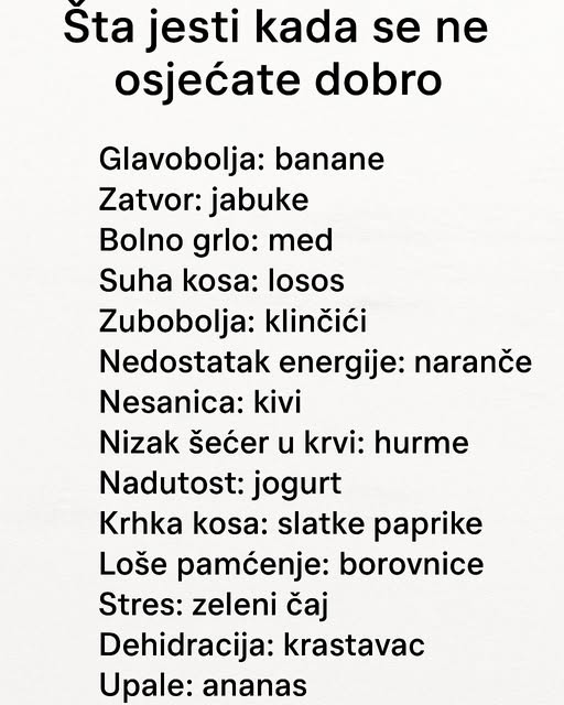 Šta jesti kada osjetite da vam tijelo slabi? U nastavku teksta pročitajte za šta je koja namirnica. Naše tijelo nam svakodnevno šalje poruke, ali ih često ignorišemo. Umor pripisujemo obavezama, glavobolju stresu, a loš san nedostatku vremena. Ipak, u mnogim slučajevima uzrok nije toliko složen. Često se radi o manjku određenih nutrijenata ili narušenoj ravnoteži u organizmu. Hrana tada postaje više od pukog obroka. Ona je podrška, oporavak i prvi korak ka boljem osjećaju.