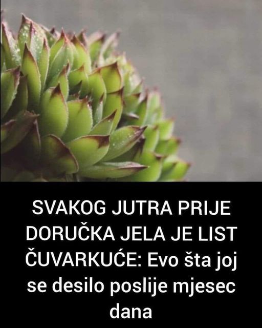 Čuvarkuća je veoma ljekovita biljka. U nastavku teksta doznajte šta se desi kada je jedete mjesec dana. Čuvarkuća je biljka koju mnogi prepoznaju po njenim mesnatim, zelenim listovima i čestoj prisutnosti na krovovima kuća, balkonima i dvorištima. Još od davnina smatrana je biljkom zaštitnicom doma, ali i snažnim prirodnim saveznikom zdravlja. Iako je najčešće poznata po vanjskoj primjeni, naročito kod problema s kožom, čuvarkuća ima i vrijedna svojstva kada se koristi iznutra. Narodna medicina generacijama prenosi znanja o njenoj upotrebi, a danas se sve više ljudi ponovo okreće prirodnim rješenjima i jednostavnim receptima koji ne opterećuju organizam.