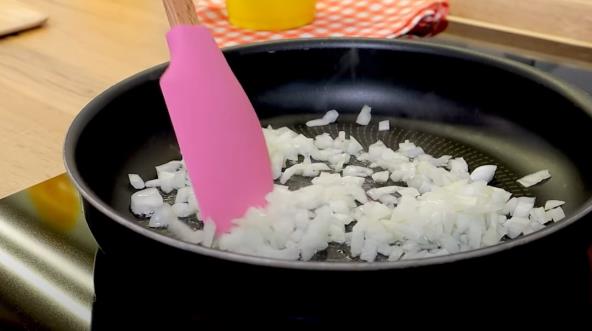 • Miješajte neprestano naredna dva do tri minuta, dok ne dobije zlatno-smeđu boju i mekanu strukturu.