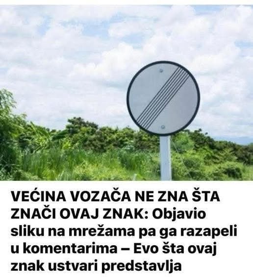 Znak koji je zbunio vozača i veliki broj korisnika Tvitera označava prestanak svih zabrana i ograničenja. Njegova uloga je veoma jednostavna, ali je ipak mnogima nepoznata. On pokazuje da od tačke gdje je postavljen više ne važe ograničenja ili zabrane koje su prije njega označene drugim saobraćajnim znakovima.