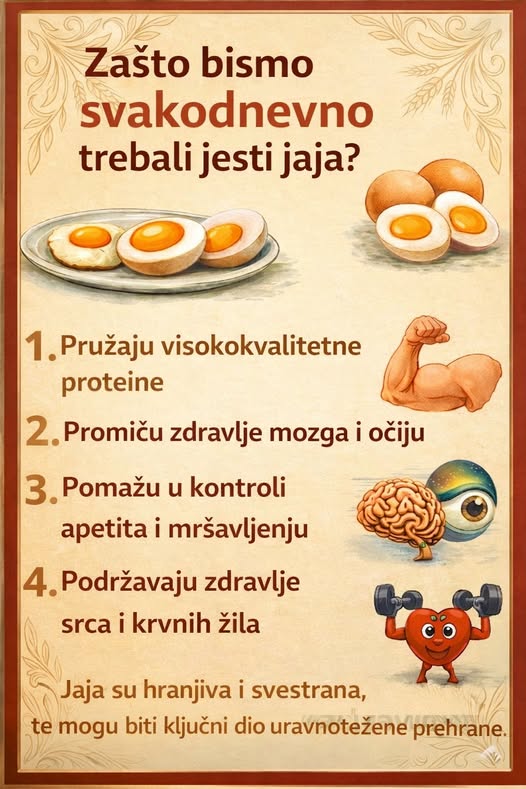 Zahvaljujući ovoj kombinaciji, jaja doprinose jačanju imunološkog sistema, održavanju energije i pravilnom funkcionisanju metabolizma.